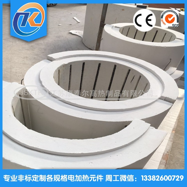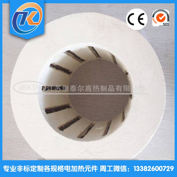 上圖為江蘇康泰爾陶瓷纖維加熱器的實(shí)物照片。將波形絲吊掛在高溫